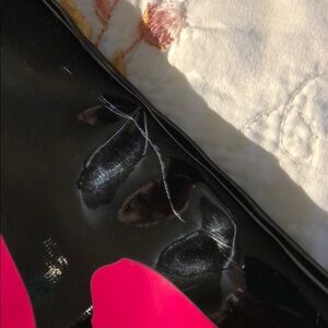 Victoria’s Secret shiny black vinyl bag with hot pink script across front and one pocket on the inside. I have tried to detail scratches and small tears at the bottom of the bag in my pictures otherwise in great condition with lots of life left.