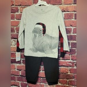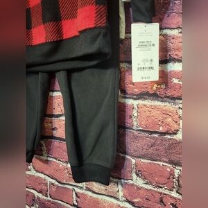 This Carters 3 piece plaid fleece outfit is brand new with Tags still on it. This Carter out fit comes with black fleece pants and a red n black plaid fleece 3/4 zip up pull over and a long sleeve walrus shirt.