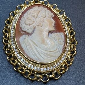 Vintage Amedeo Cameo Necklace. 2 inch pendant, chain is 22-25”. Very unique! In excellent condition.
