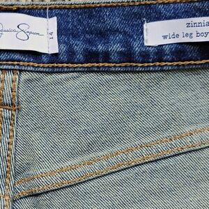 Authentic brand new with original tags attached. Jessica Simpson Zinnia jeans in a relaxed wide-leg boyfriend fit with subtle stud detailing for a polished boutique look. Structured denim with a classic 5-pocket design and button fly. Comfortable, flattering, and easy to style year-round.
