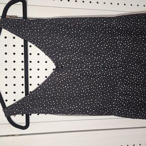 Talbots Pure Silk Size 10 Black w/ Cream Dots Midi Dress Sleeveless Pleated