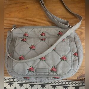Vera Bradley Carson Quilted Floral Crossbody Bag - Gray and Pink- flaw