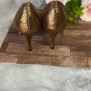 Elegant bronze heels with a textured finish. Perfect for a night out.