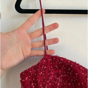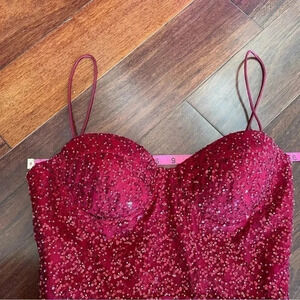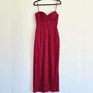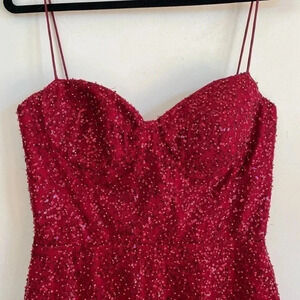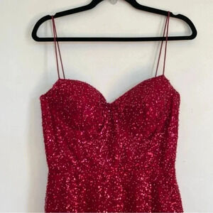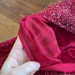René The Label Rene Atelier Red Beaded Prom Gown Long Sleeveless Sparkle Padded