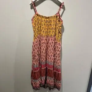 Beautiful Knox Rose boho-style sundress in a women’s size XXL. Features a mixed floral patchwork design with warm tones of yellow, pink, and red. Lightweight and flowy material with adjustable straps for a comfortable fit. Perfect for summer, vacations, festivals, or casual everyday wear. In great preowned condition with no flaws noted.