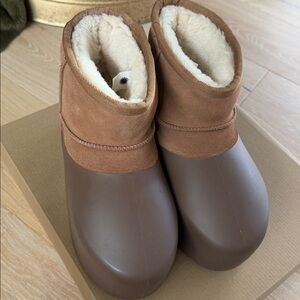 UGG super unique and sporty. Ready for any cold weather day. Bring on the snow & slush in these waterproof mini platform. Warm and cozy boots with plush cream lining. Ideal for cold weather. Women’s 8 NWT and box FIRM PRICE ONLY, ships same day.