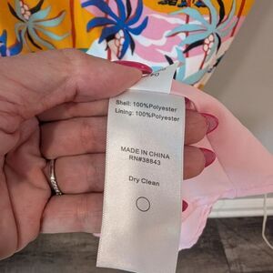 Embrace vibrant style with this sleeveless dress featuring a colorful tropical print. Perfect for sunny days. vacation and the beach! cute tie shoulders make it versatile. size 8. excellent pre-loved condition. measurements in photos. a4
