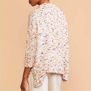 In extra plush chenille, this poncho-inspired knit is made for cozying up to. Round neck. 3/4 sleeves. Side slits.