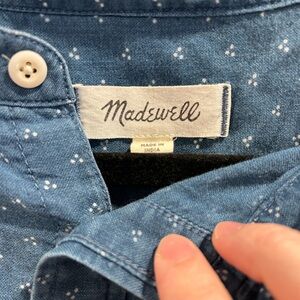 Madewell Men's Denim Banded-Collar Perfect Shirt in Indigo Dot Size XL