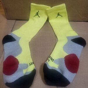 Jordan Retro Dri-fit Electric Yellow/Black Mid-Calf Socks.....Black Jumpman On Side.....Clean Ready to wear......Matches Squadron Blue Retro 13....Pre-owned.....Men Size 8-12.....SOCKS ONLY.....See All Photos