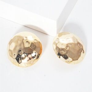 Simple and stylish, these large stud earrings are a great everyday look. Created in warm gold, each half ball is finished with a unique hammered texture that adds depth and dimension. Buffed to a brilliant shine, these post earrings secure with friction backs.