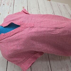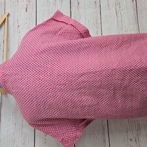 Classic and polished Jaeger blouse in a beautiful pink geometric print. Lightweight and comfortable—perfect for work, meetings, or everyday wear. Easy to dress up or down.
