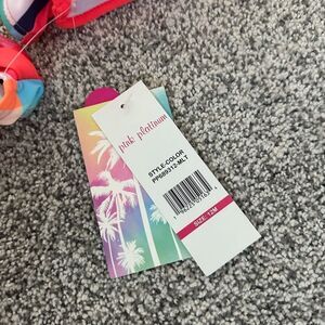 NWT toddler swim bikini set. Cute little heart charm and tied in bow. Geometric design. Never worn.