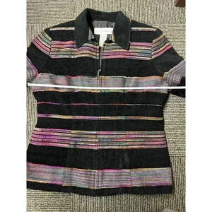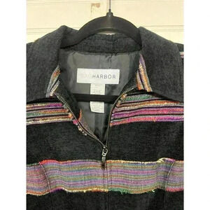 Sag Harbor Full Zip Blazer Vintage Black Multi Stripe ladies size 8