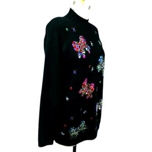 VTG 80s Butterfly Sweater Encrusted Jewels Black Ramie Blend Tunic NWT 3X