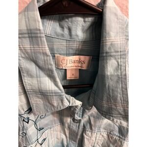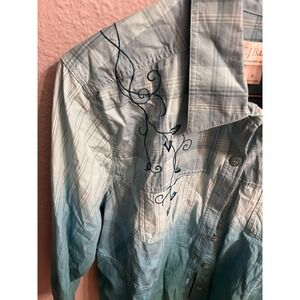 Christopher & Banks Blue Plaid Button Up Shirt Womens 3/4 Sleeves size x