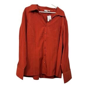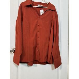 Cato women's long sleeve, rust colored, linen blend button down shirt, Size XXL