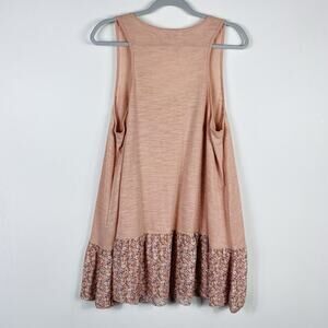 Umgee Plus Size 1XL 1X Floral Hem Sleeveless Swing Tank Top Pink Cotton Blend