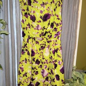 This is an Alice + Olivia Silk Chartreuse Green Purple Floral Corinne Dress. Size large like new.