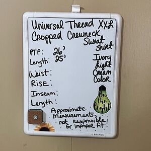 Universal Thread Cropped Sweatshirt, Soft fabric with a relaxed/oversized fit. Ideal for layering or wearing alone. Color is more of an Ivory/Light Cream although it may appear White in photos. See photo for approximate measurements & condition.