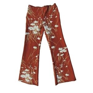 Urban Outfitters UO Dalila Flare Pants Women's Small Low Rise Y2K Orange Floral Print w/ Stretch