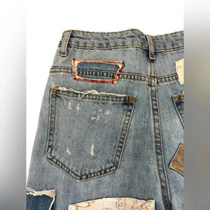 Zara Distressed Destroyed Mixed Patchwork Festival Customized Premium Jeans Sz 2