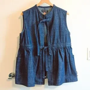 WORKWARE Indigo Slub tie-front Denim Gilet Vest - M/L