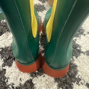 Bold green and yellow boots with a unique design. Perfect for a standout look.