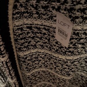 Chic black and white cardigan. Textured knit design. Open front style. Perfect for layering.