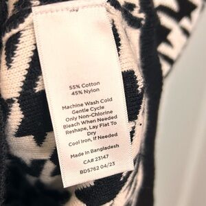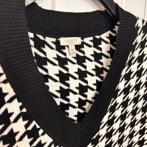 Talbots Womens Sweater Vest MP Black White Houndstooth V Neck Knit Pullover