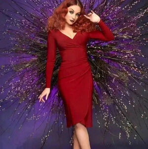Burgundy Faux Wrap Greta Dress - Laura Byrnes