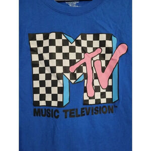 WOMEN'S MTV BLUE CHECKERED LONG SLEEVE CROP TOP SIZE MEDIUM - PERFECT CONDITION