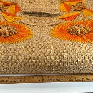 Vtg Straw Raffia Large Beach Tote Bag- 70’s Hand Made Woven 22x20” MCM Retro