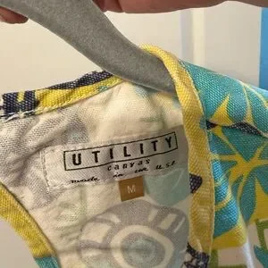 Utility Canvas dress, made in USA dress, art teacher dress, folk art dress, whimsical print dress, bird print dress, botanical dress, cotton canvas dress, slow fashion, cottagecore dress, A line dress, size medium dress