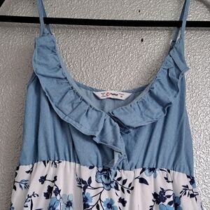 Blue Floral Sleeveless Summer Midi Dress Size M