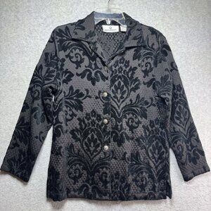 VTG Erin London Jacket Blazer M Black Baroque Brocade Tapestry Damask Velvet