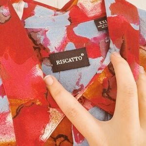 Bright floral button-up shirt with red, blue, and orange hues. Perfect for a bold look. In perfect condition with no flaws, rips or tears! comment if you have any further questions! ( Any flaws will be pictured )