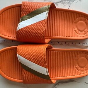 Sandalboyz Men 15 Orange Slide Sandals with Gold and White Stripes
