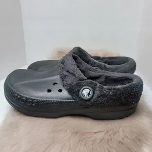 Crocs Black Faux Fur Unisez Clogs Shoes Size 9 M 11 W