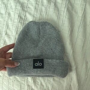 Soft and stylish gray knit hat by ALO Yoga. Ideal for cool weather.