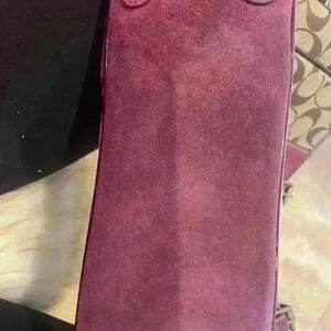 Beautiful raspberry suede and brown Coach shoulder bag vintage. No tears or rips. Gentle wear. Please see photos. Perfect sized bag!