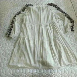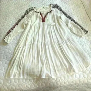 Old Navy Long Sleeve BOHO Embroidered Dress Womens Size M White Lined Tassel