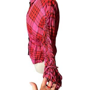 We The Free By Free People Women's Pink Red Pacific Dawn Plaid Shirt Size XS
