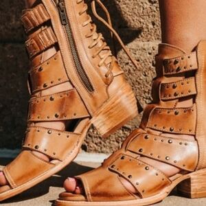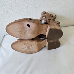 Freebird Ghost Steven Sandals Size 8 Tan Leather Side Zip Closure Handmade Boho