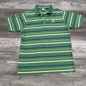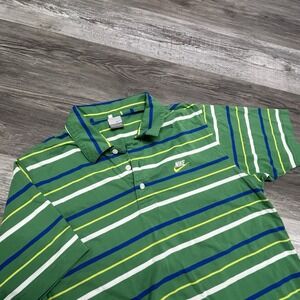 Vintage y2k Nike Polo Shirt Size L Green Blue Big Swoosh Y2K Gray Silver Tag