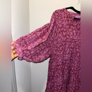 Daughters of India Floral Midi Dress in Purple and Brown