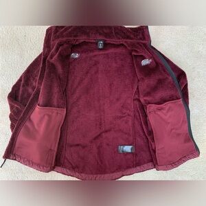 The North Face women’s size medium M Shadow Luxe Osito Fleece Jacket in regal red, a maroon / burgundy color.