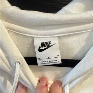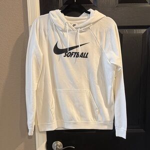Classic white Nike hoodie with bold black 'Softball' logo. Includes front pocket and adjustable drawstring hood.