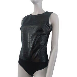 Black Faux Leather Bodysuit M Tank Top Croc Embossed Basic Layer Edgy EXPRESS