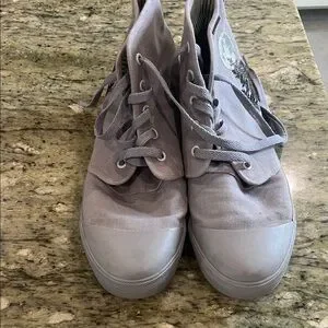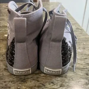 Elevate your casual look with these stylish BANGS Hi Top Carolina Trees Sneakers in gray/blue. These sneakers are perfect for both men and women with a US shoe size of M9 or W10.5. With a trendy blue color and unique Carolina Trees design, these sneakers are a must-have for any fashion-forward individual. The brand BANGS is known for its quality and style, making these shoes a great addition to any shoe collection. Whether you're out for a casual stroll or running errands, these sneakers are perfect for any occasion.
